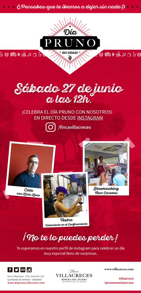 Cito textualmente: El Día Pruno ya es una fecha señalada para los amantes de este vino y de la fiesta que se organiza en torno a esta marca. Este año, Finca Villacreces quiere celebrar su día más especial en una hora y a través de IG Live. Será un Día Pruno muy especial, abierto a todos los prunolovers.